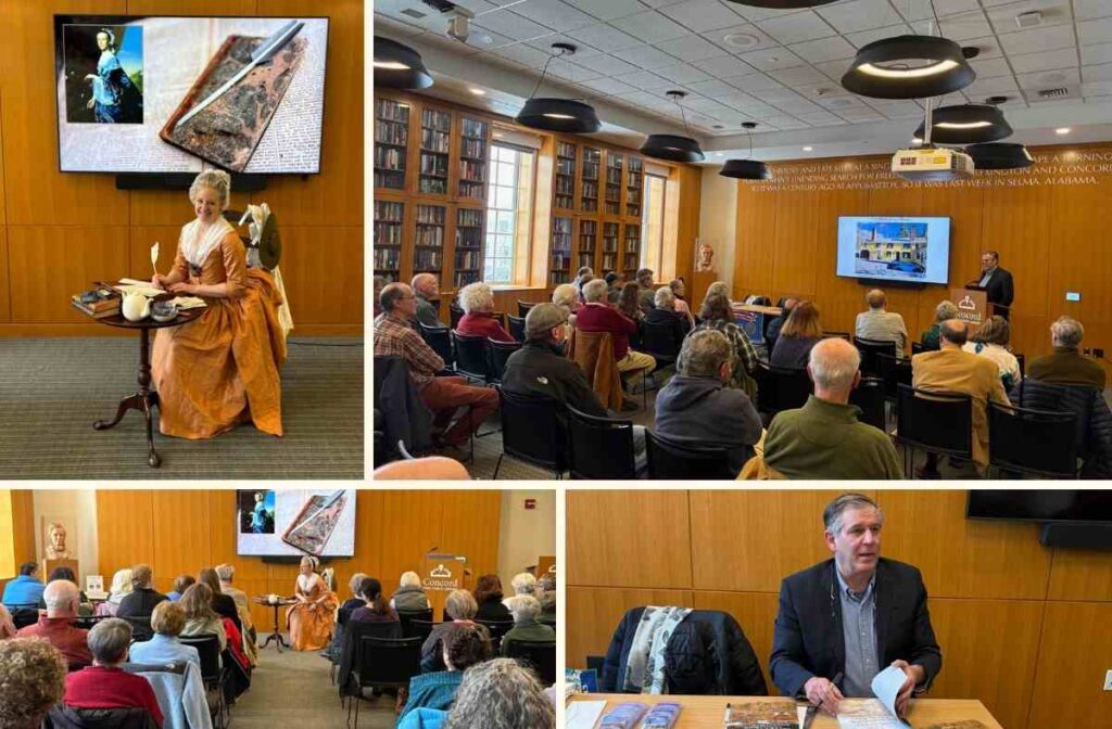 Winter Lecture Series. Thanks to our hosts at the Concord Free Public Library, two outstanding programs drew enthusiastic audiences. Joel Bohy presented “Bullet Strikes From the First Day of the American Revolution,” while Michele Gabrielson brought history to life in a first-person portrayal of Mercy Otis Warren in “American Calliope: Mercy Otis Warren and the Writings of a Revolutionary.”