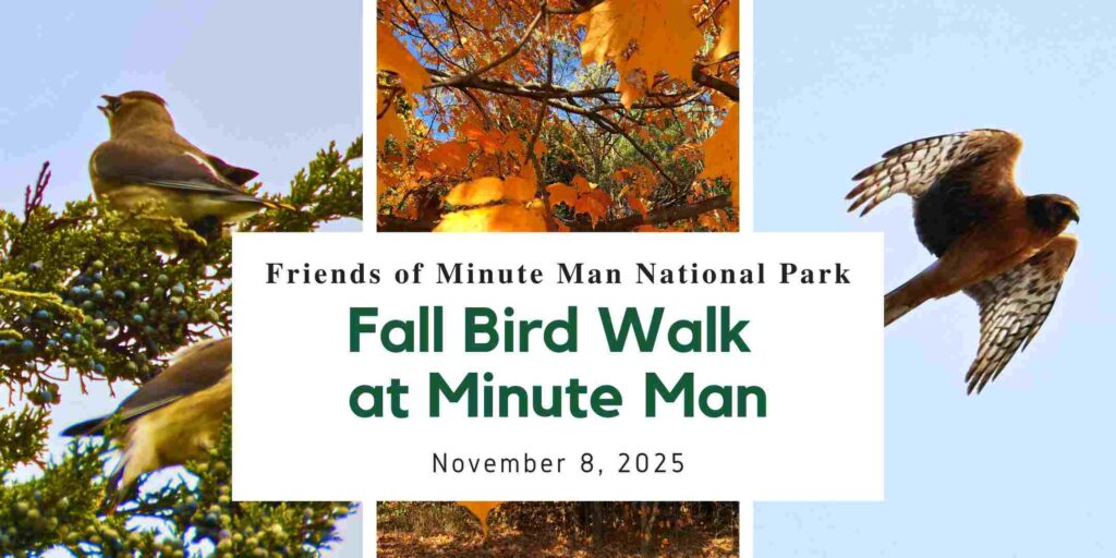 Join the Friends of Minute Man National Park for a spring bird walk! For many bird watchers, spring migration is the most exciting time of the year. We will observe birds in their colorful breeding plumage, listen to their songs, and learn which are passing through on their way north and which will stay to nest right at Minute Man National Historical Park. We’ll take a one-mile stroll through the park with Kathy Dia to see and hear some of these beautiful visitors as they court and fuel up for their journey north.